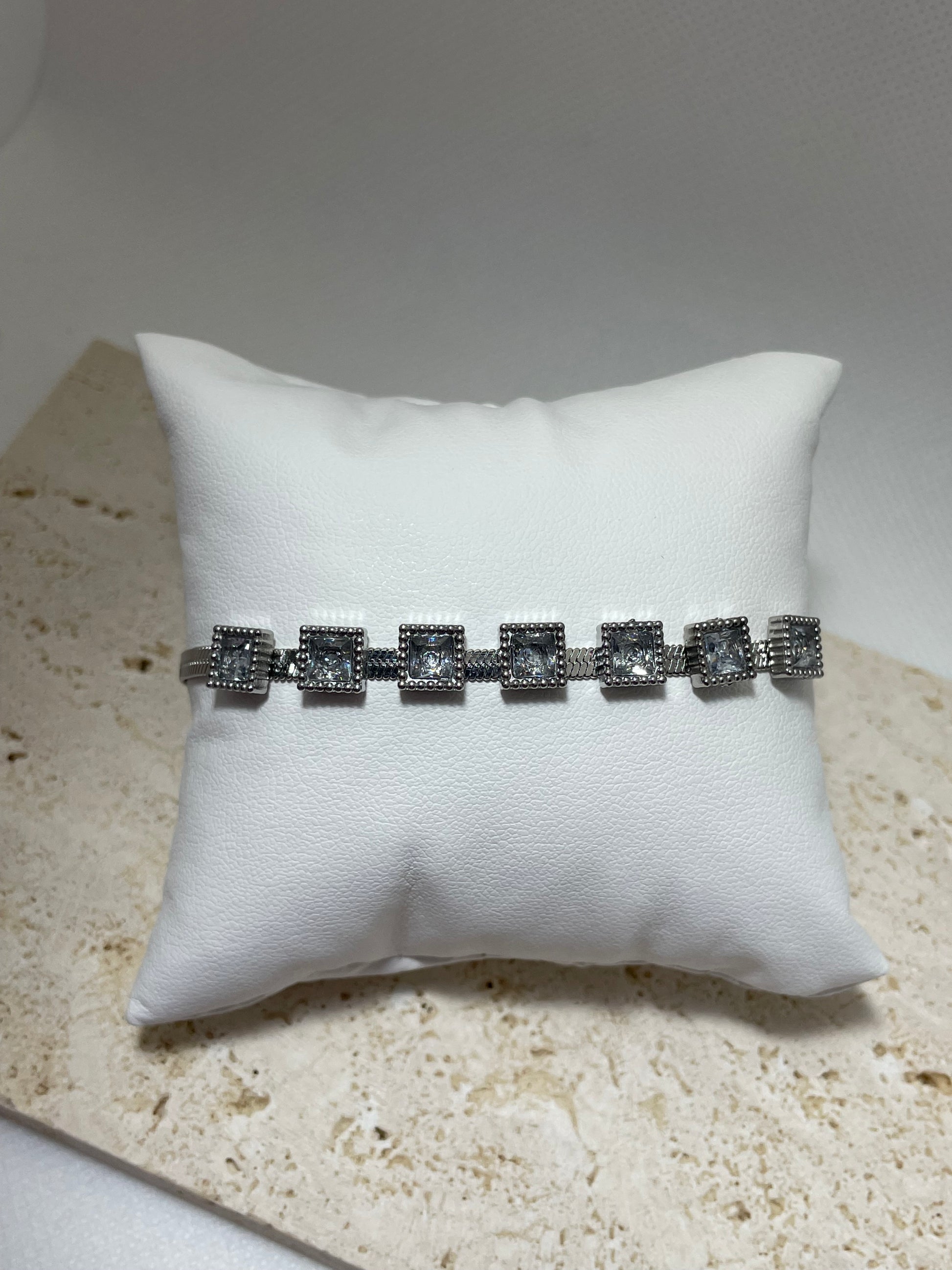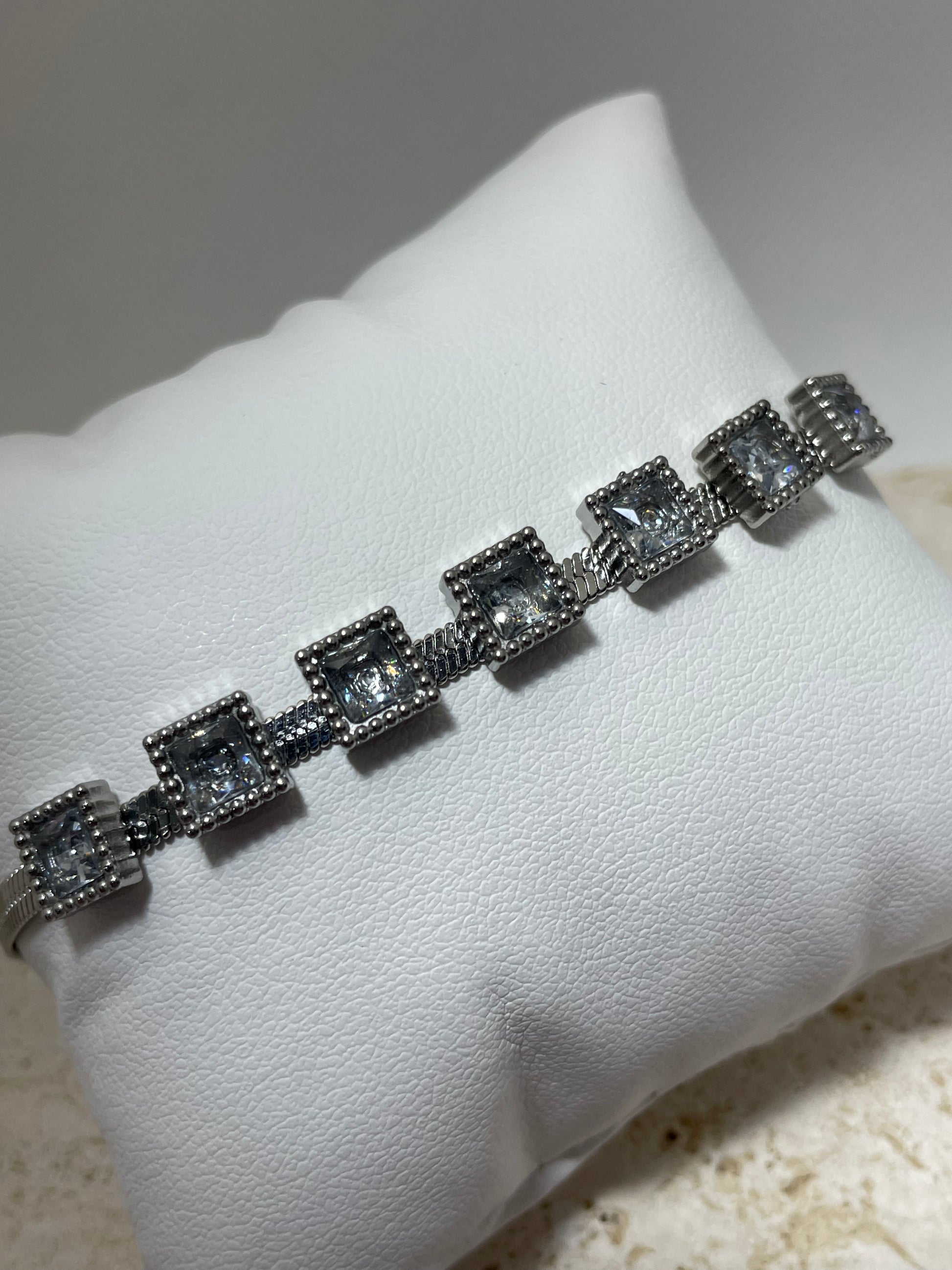 Ασημί βραχιόλι με τετράγωνες πέτρες