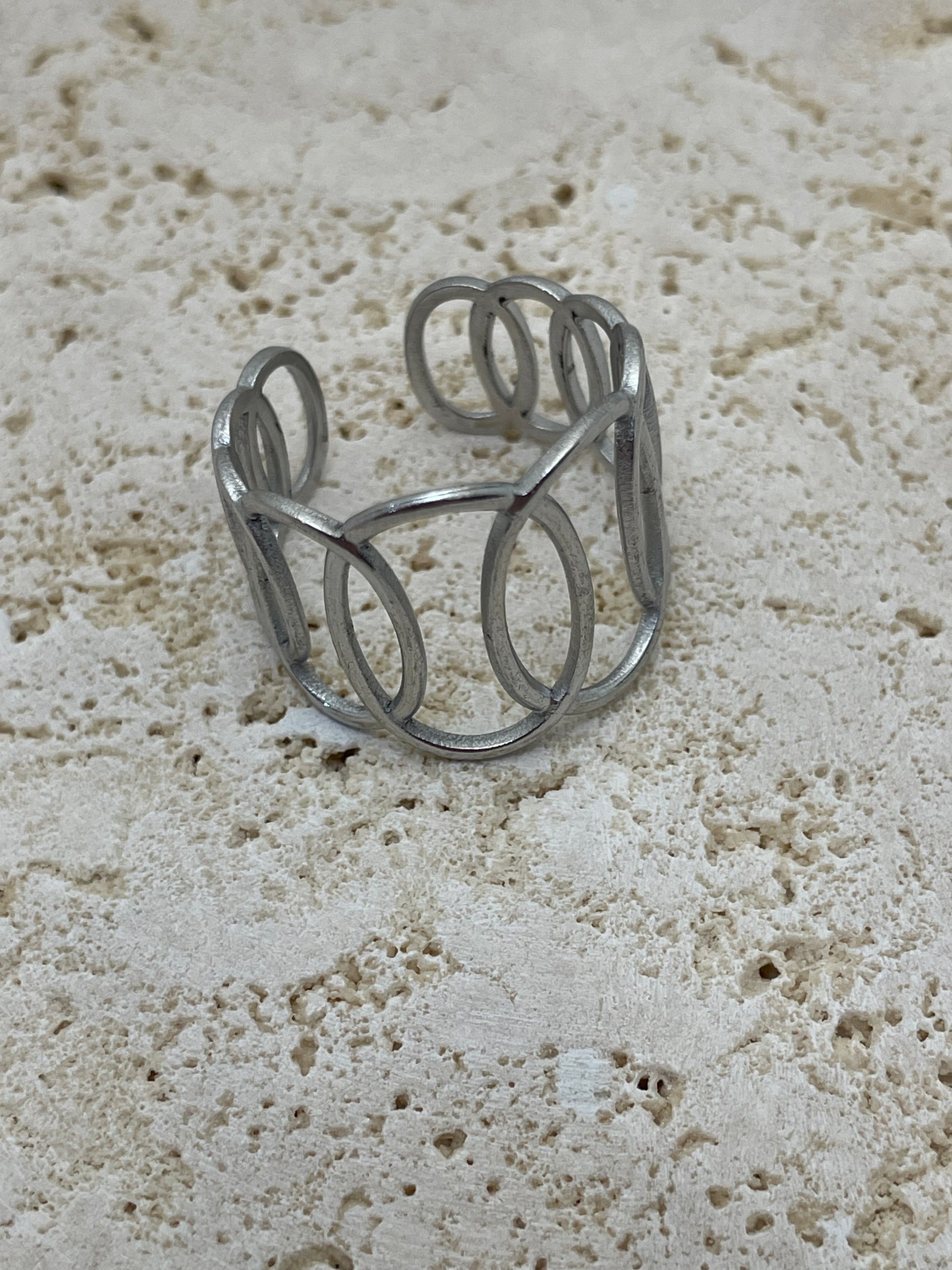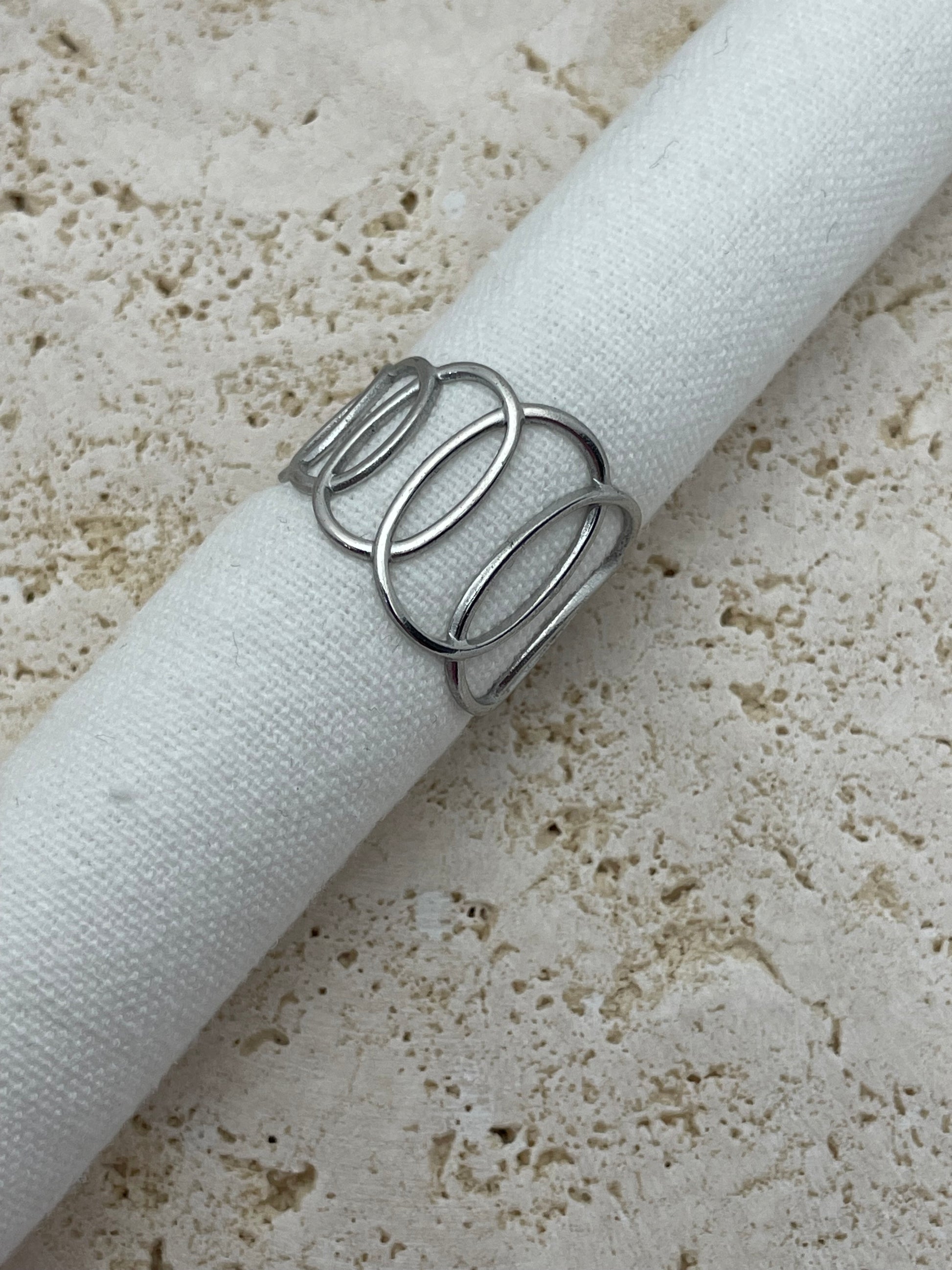 Ασημί δαχτυλίδι με οβάλ γραμμές ανοιχτό