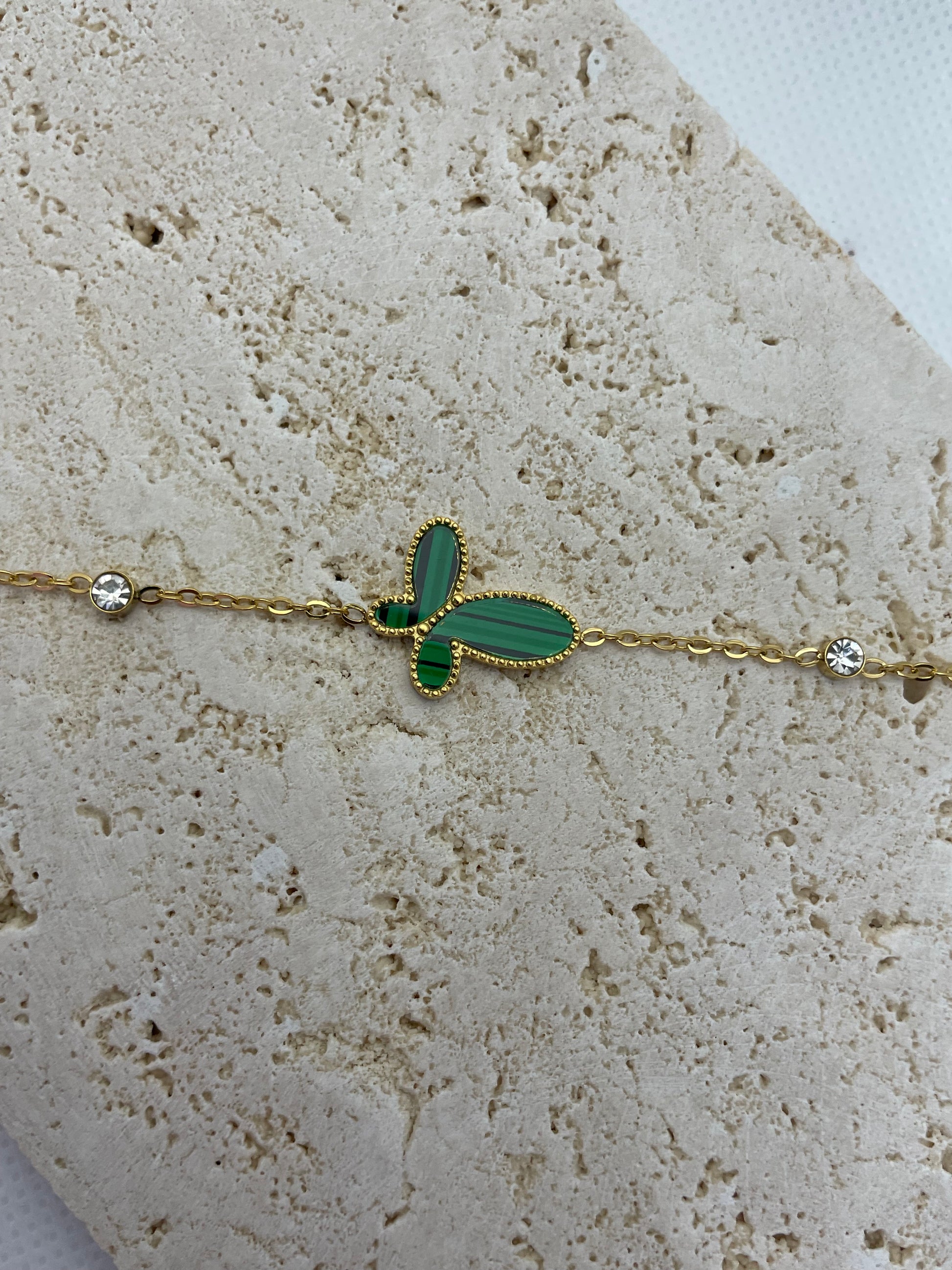 Βραχιόλι αλυσίδας με πράσινη πεταλούδα 15x17mm και στράς