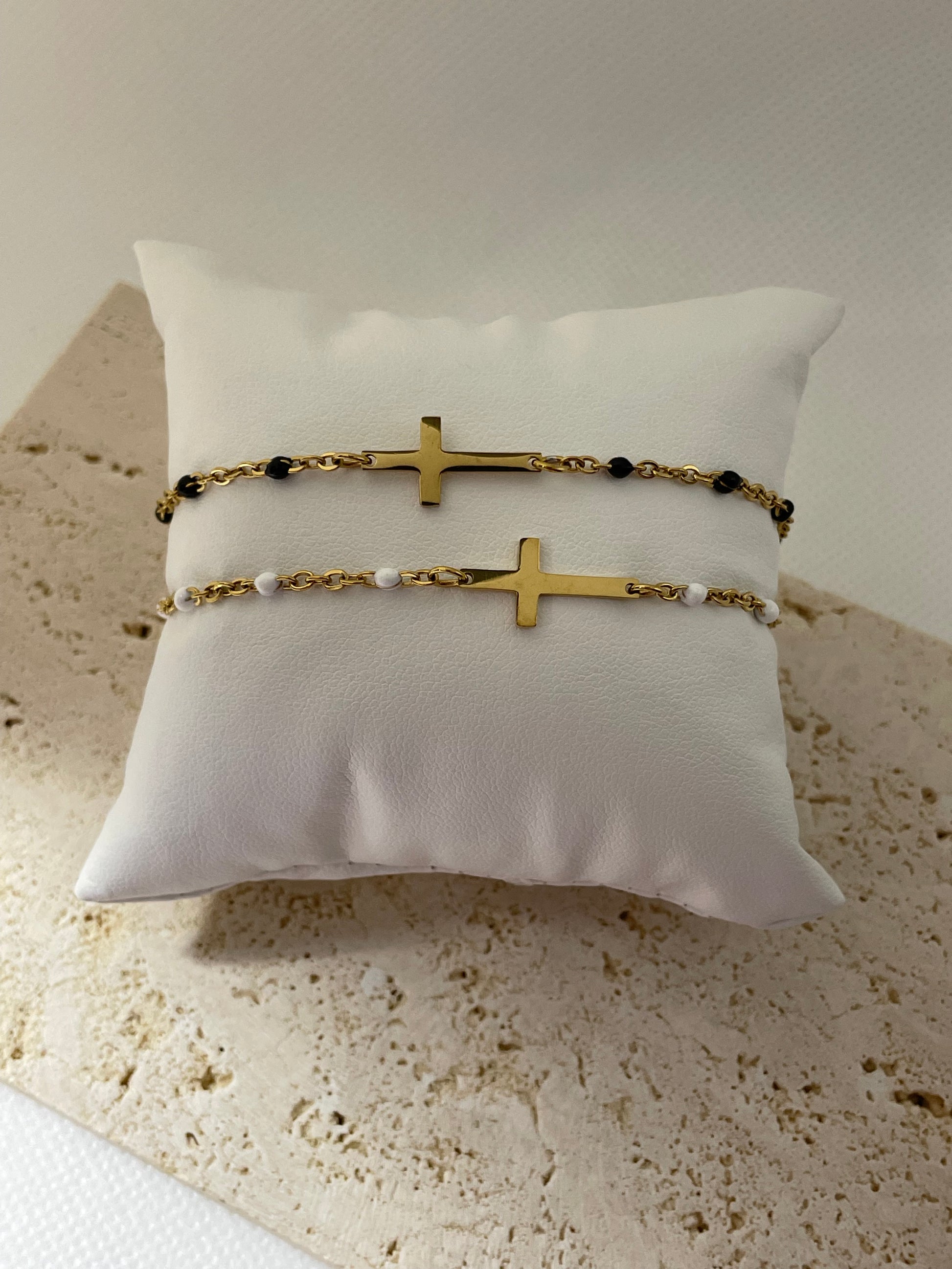 • Βραχιόλι αλυσίδας ροζάριο με σμάλτο και σταυρό 18x9mm