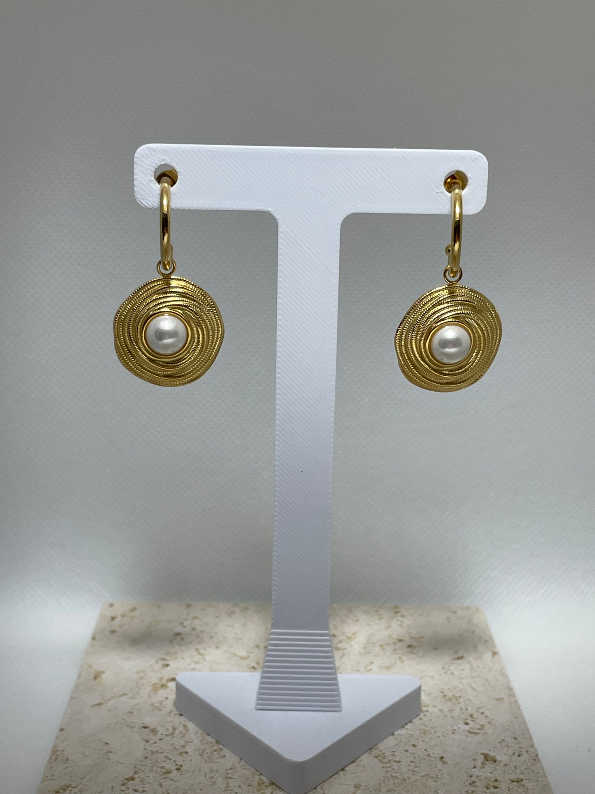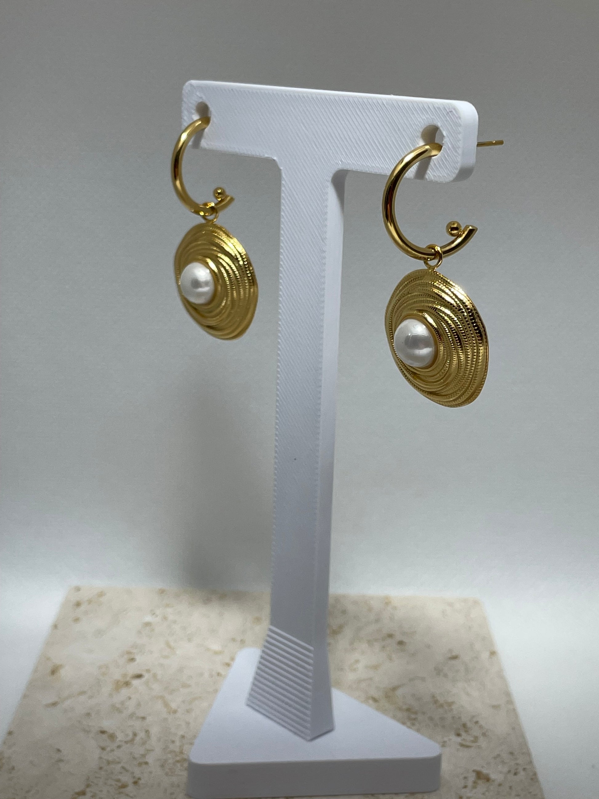 Γεωμετρικά χρυσά σκουλαρίκια με μαργαριτάρι