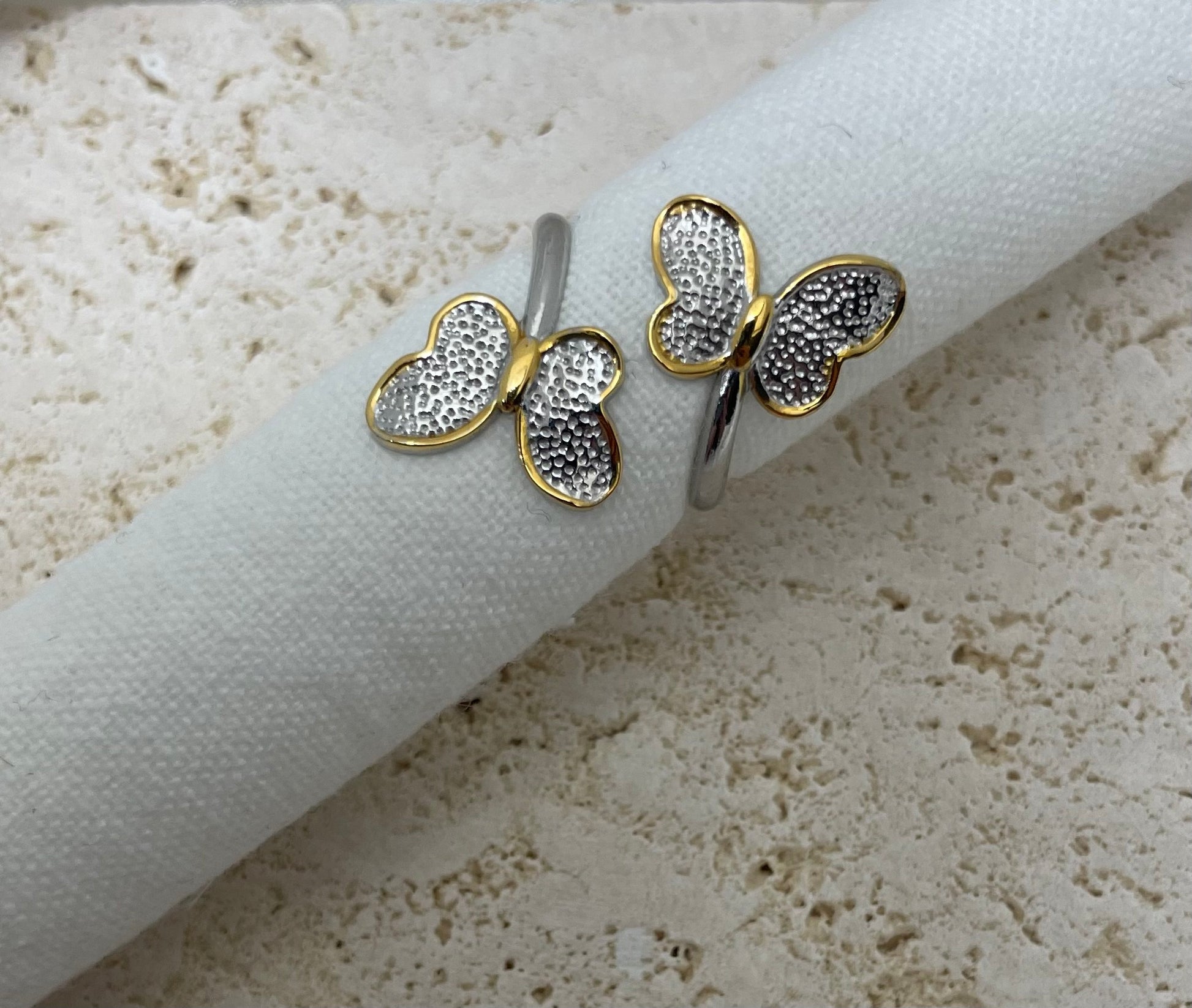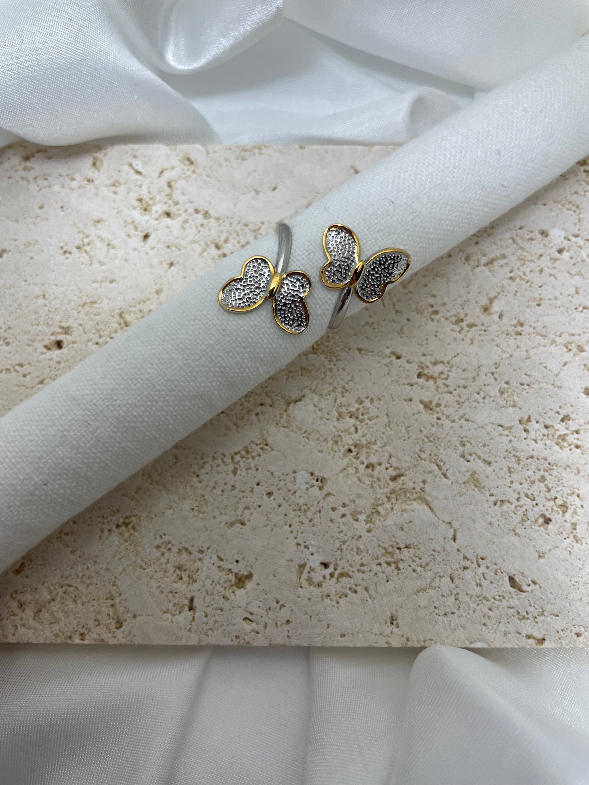 - Δαχτυλίδι με διπλή πεταλούδα δίχρωμο