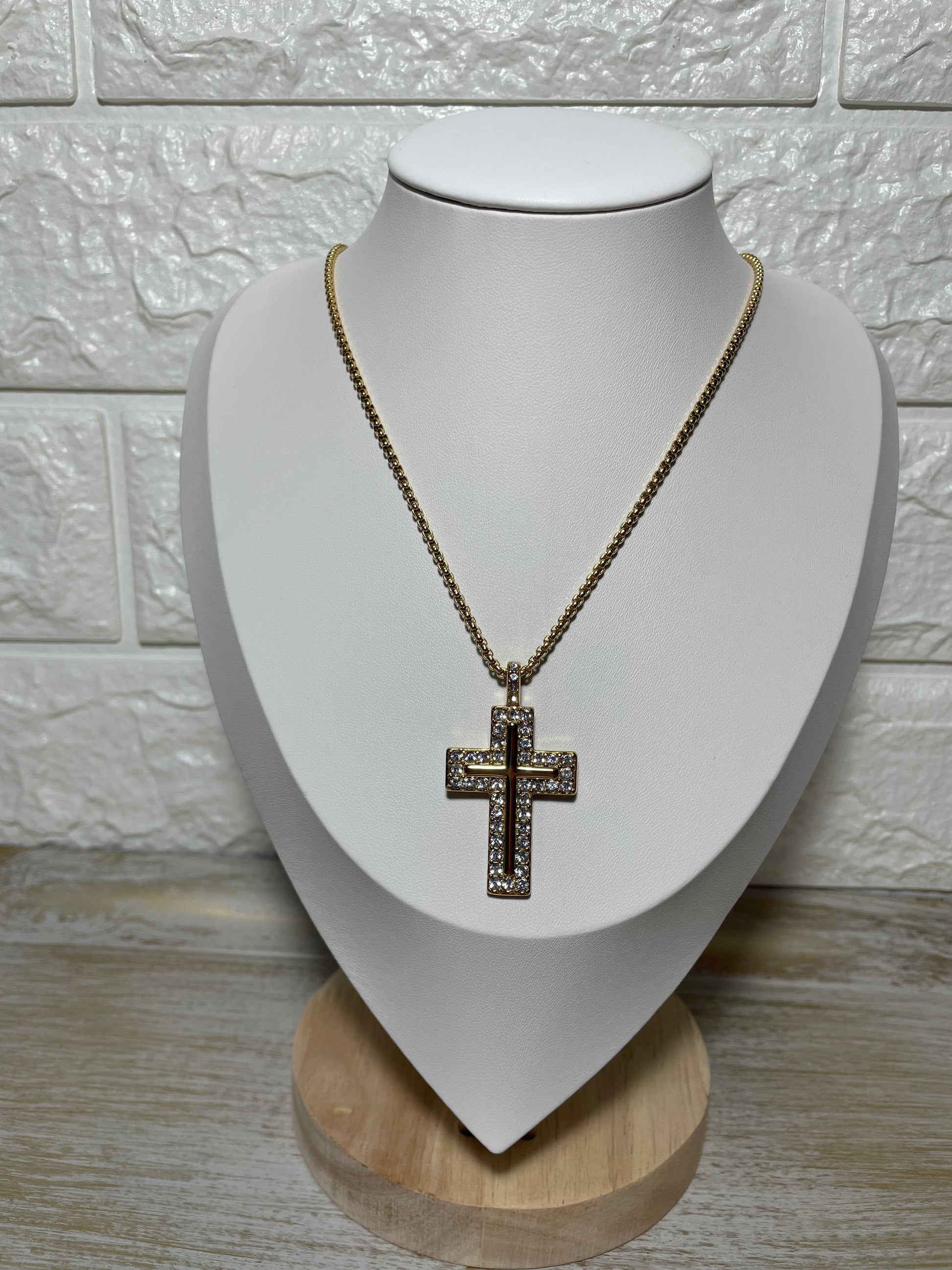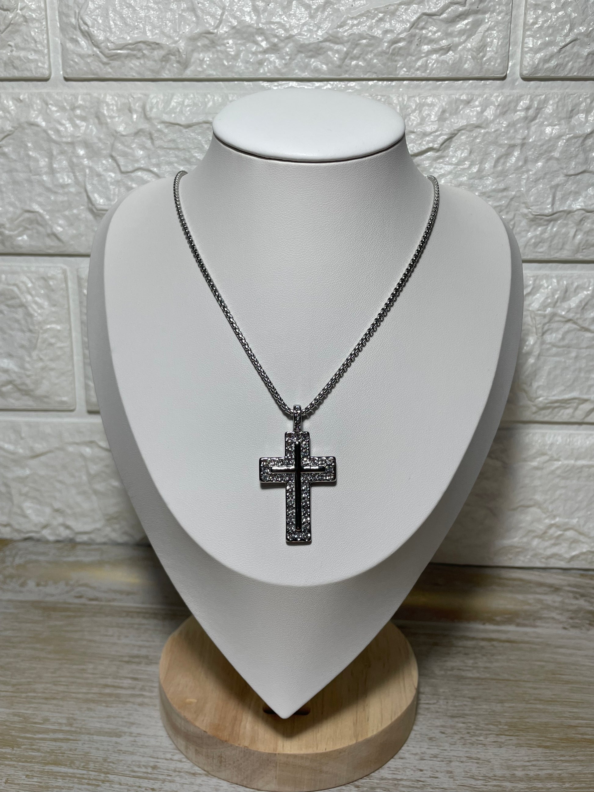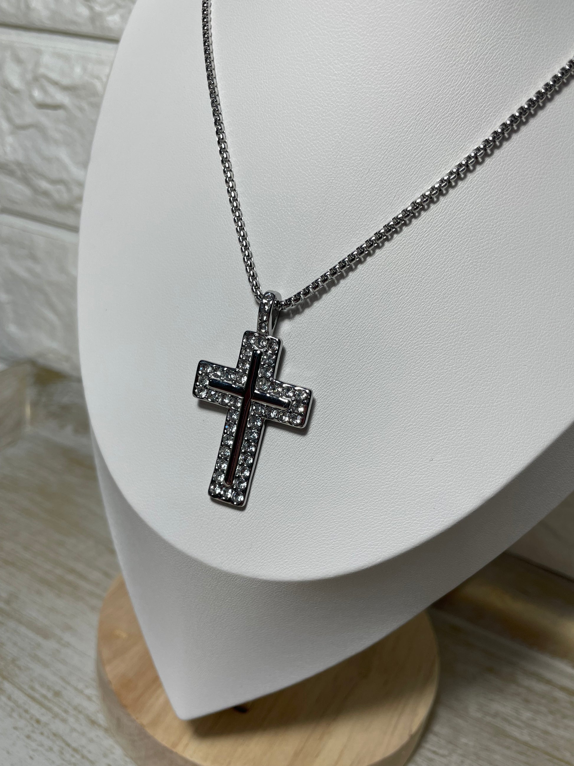 - Κολιέ με κεντρικό στοιχείο σταυρό με zircon