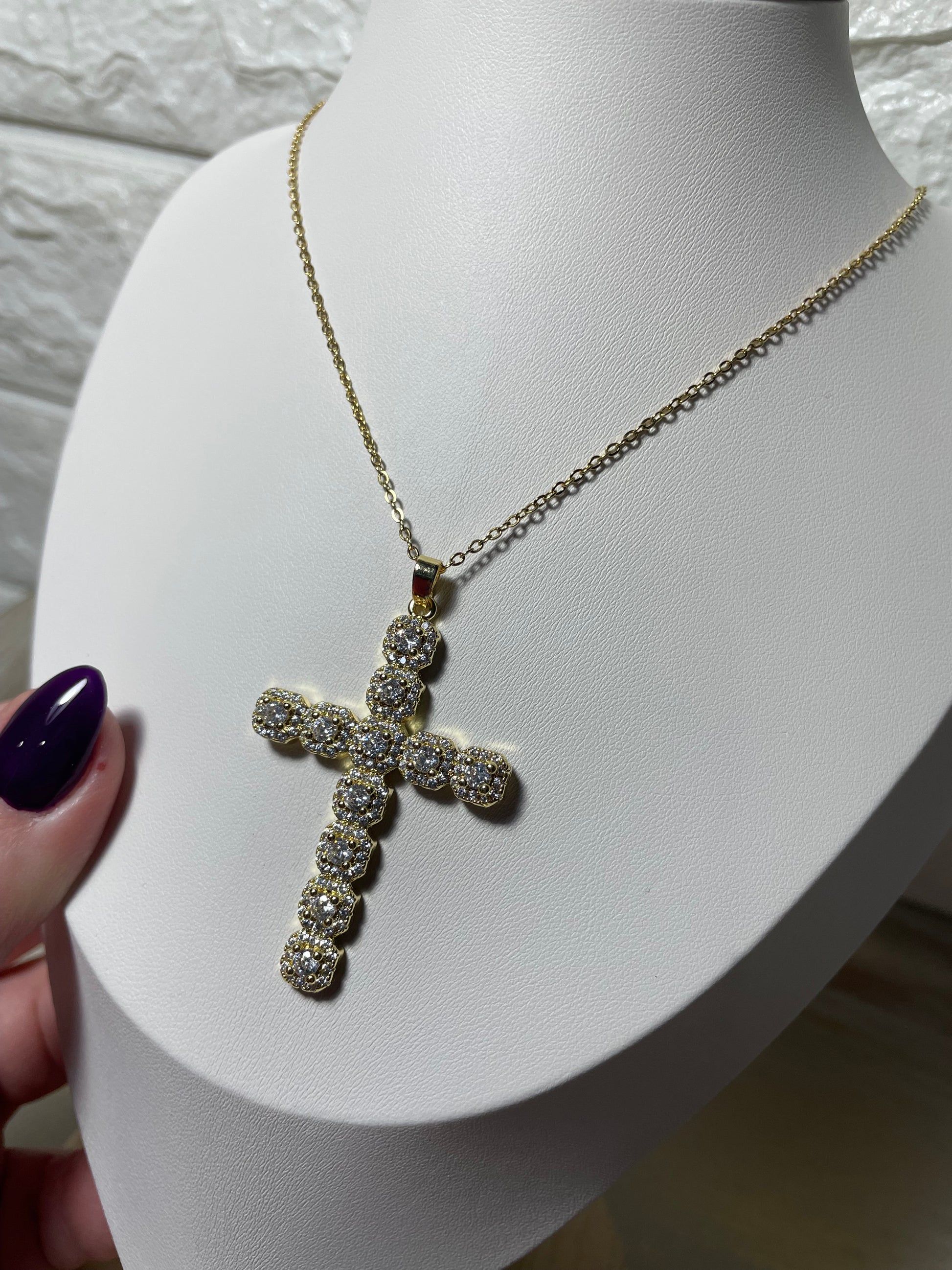• Κολιέ με κεντρικό στοιχείο σταυρός με zircon