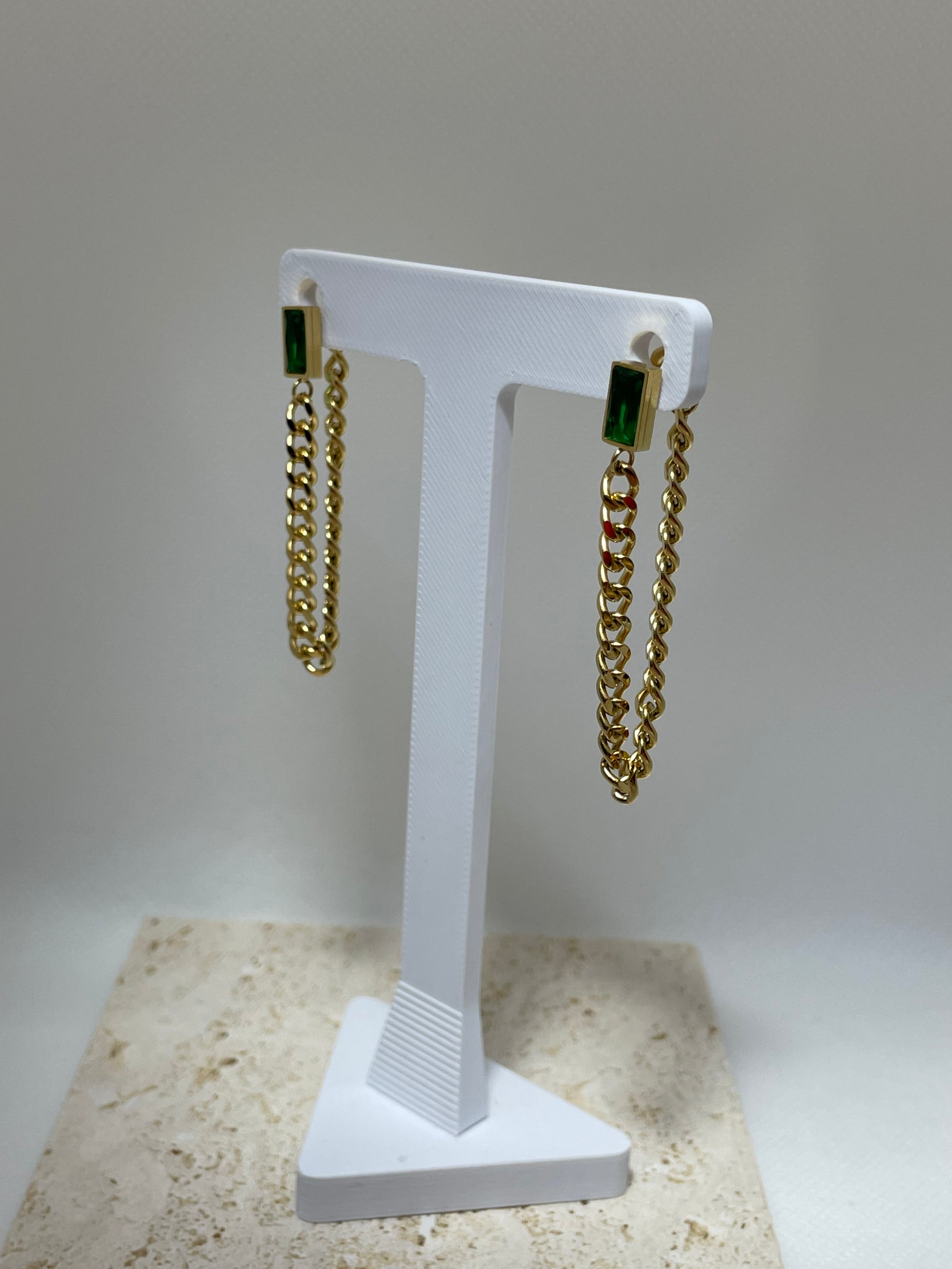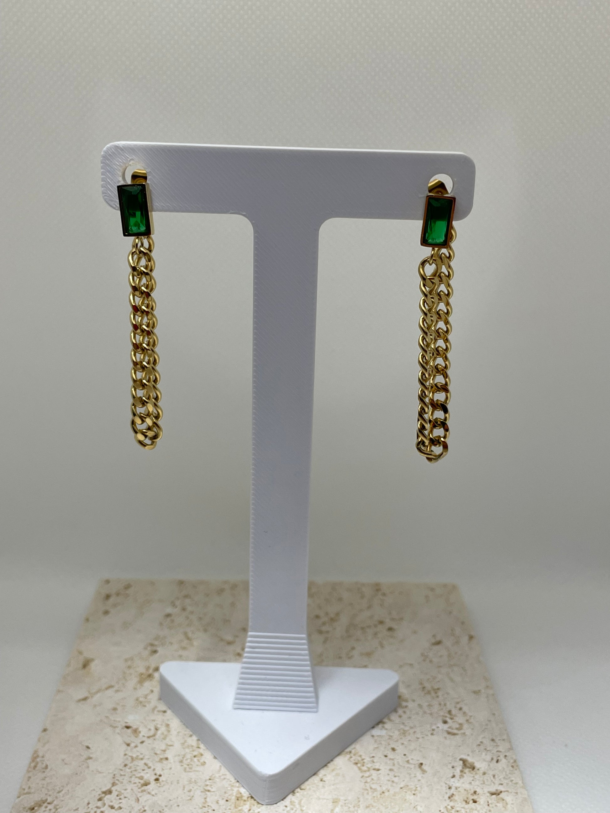 - Κρεμαστά σκουλαρίκια από χρυσή αλυσίδα και πράσινο zircon