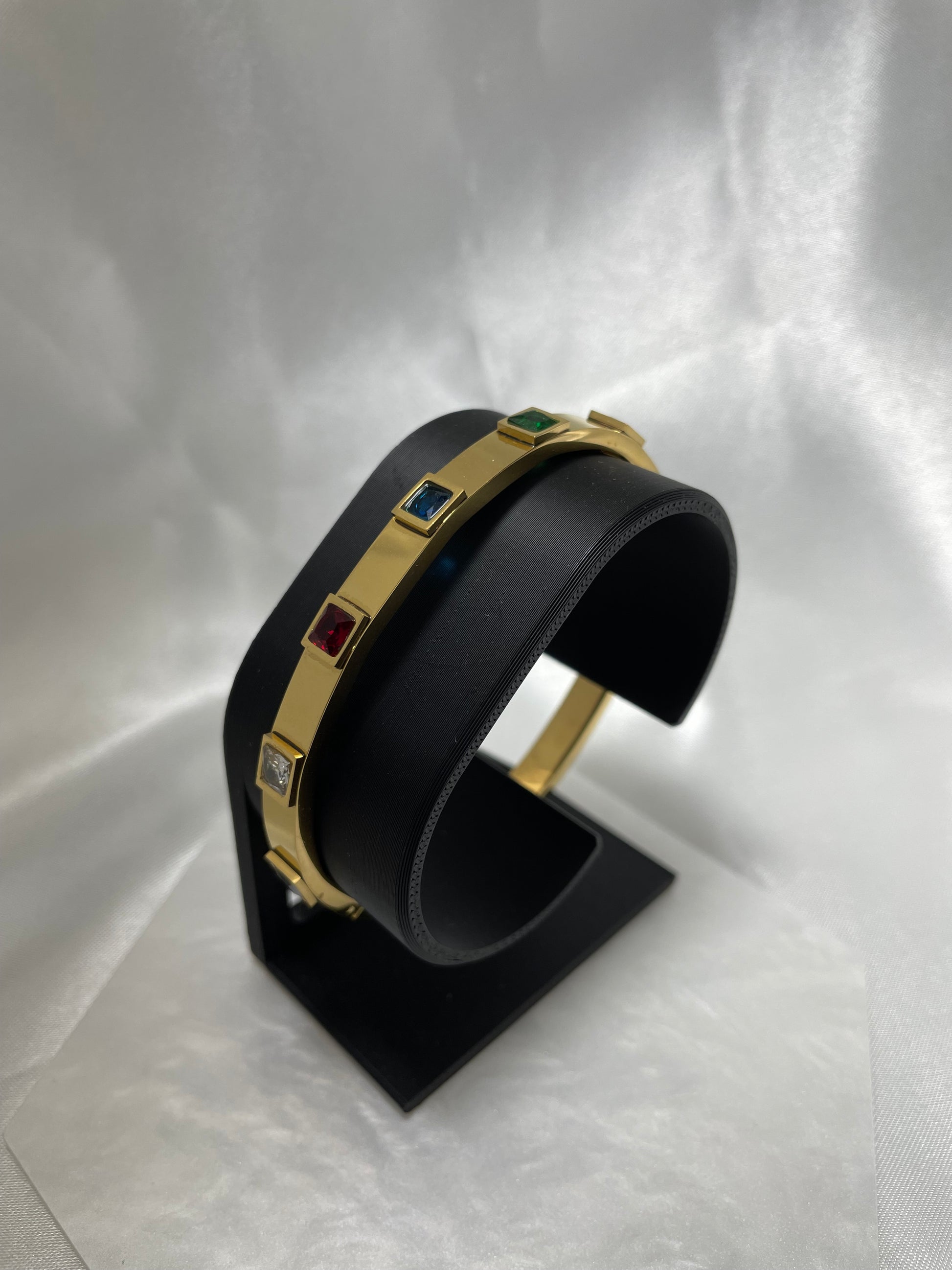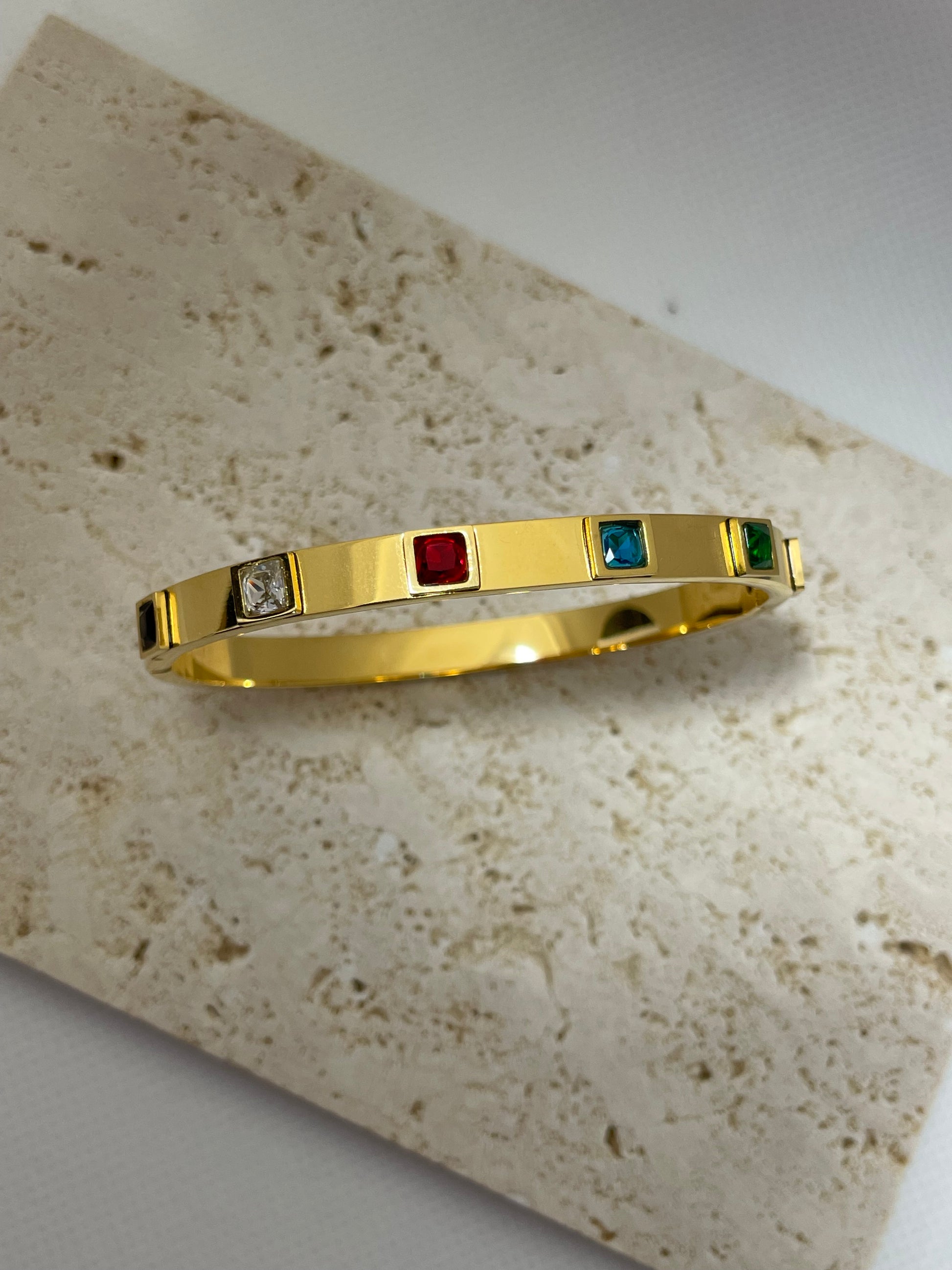 Χρυσή χειροπέδα με πολύχρωμα zircon